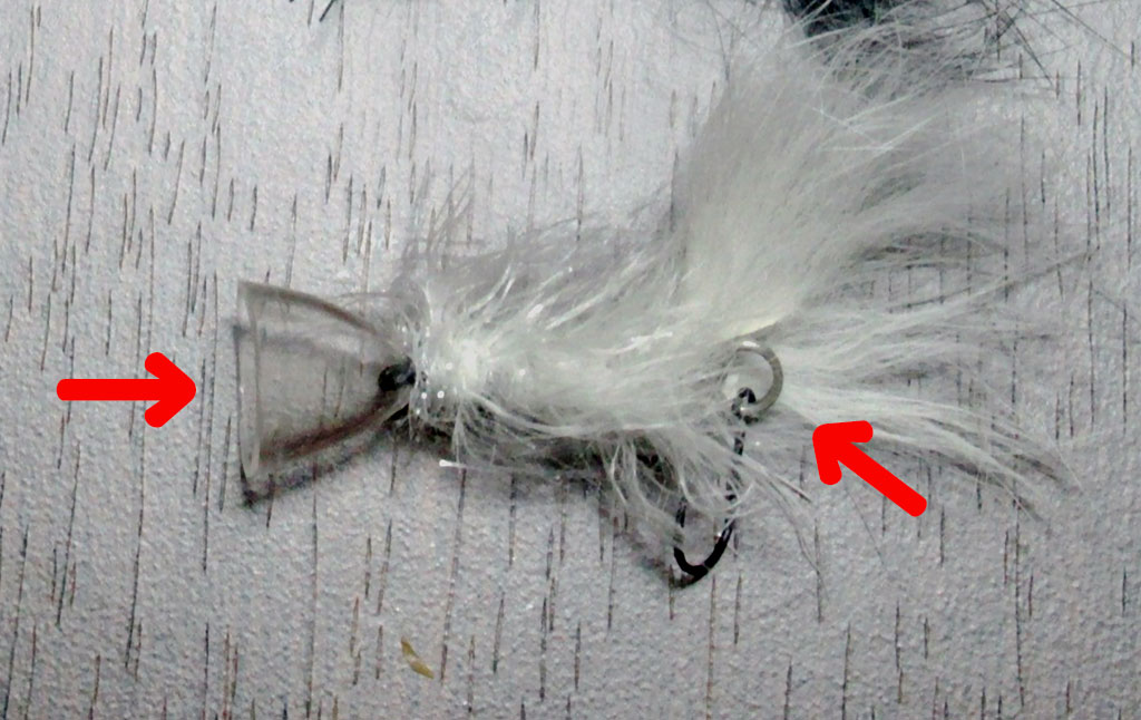 ルアー用の小さなリングでフックを付けることで