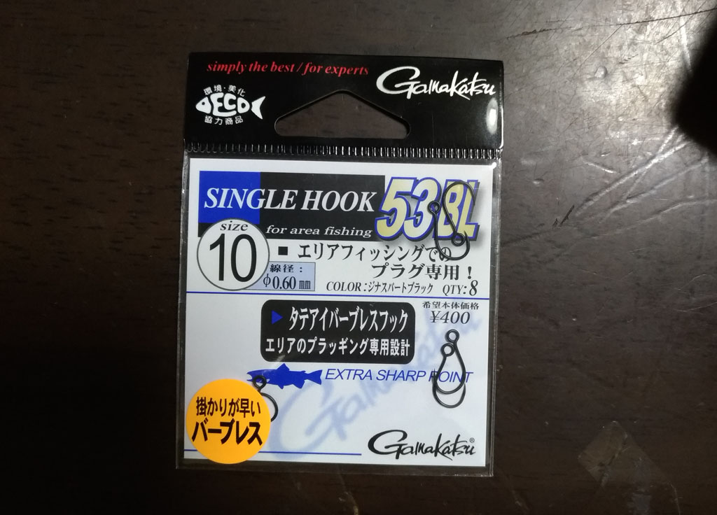 小さめのバーブレスフックを取り付けました。