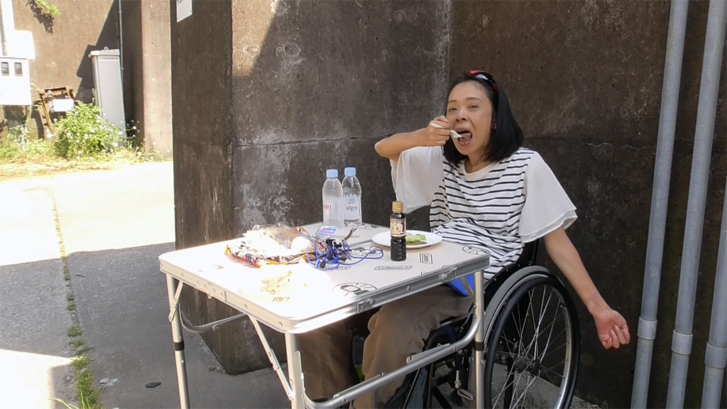 一方、頚損のおばちゃんは美味しそうに肉を頬張っていますね!
