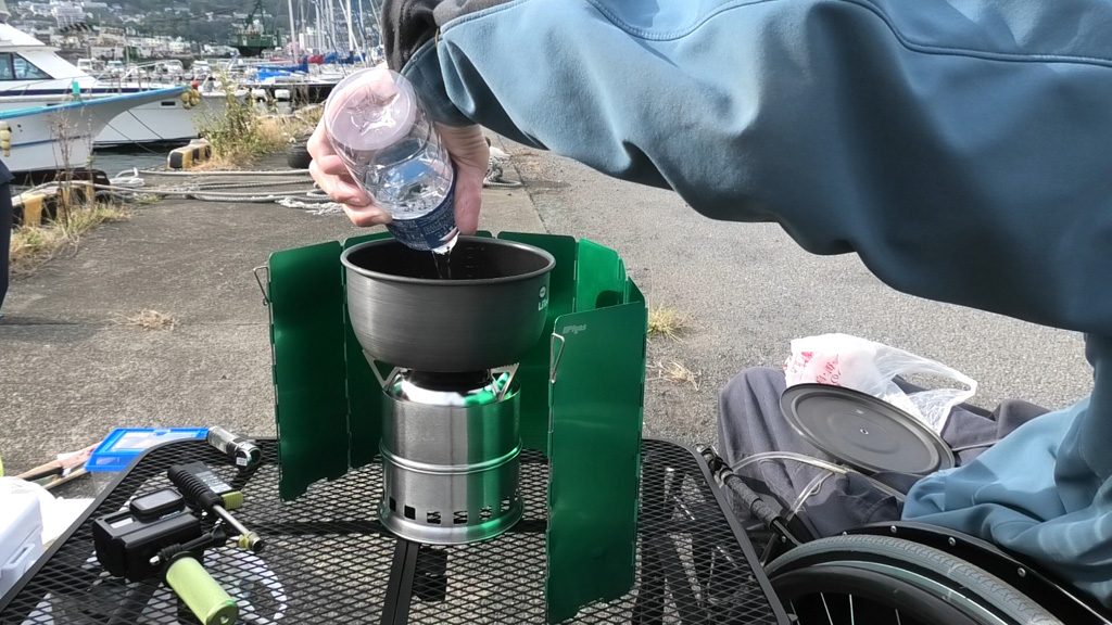 焚き火台で最初の湯沸かし