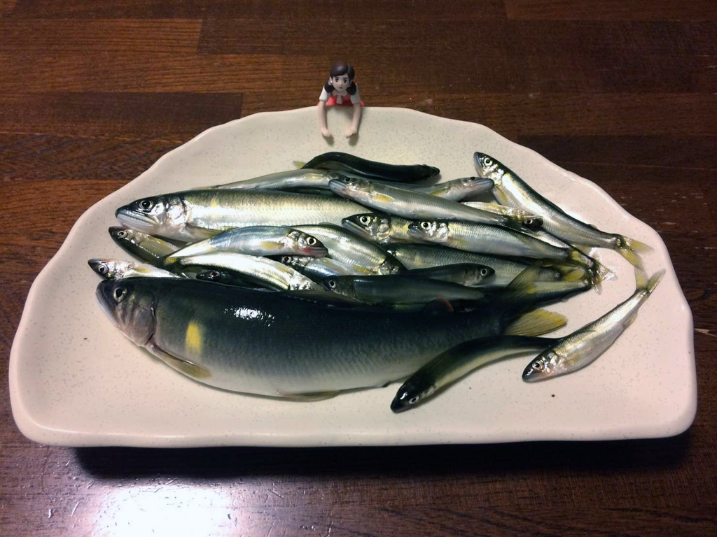 近所の川へ短時間の釣行で大漁だったようです。