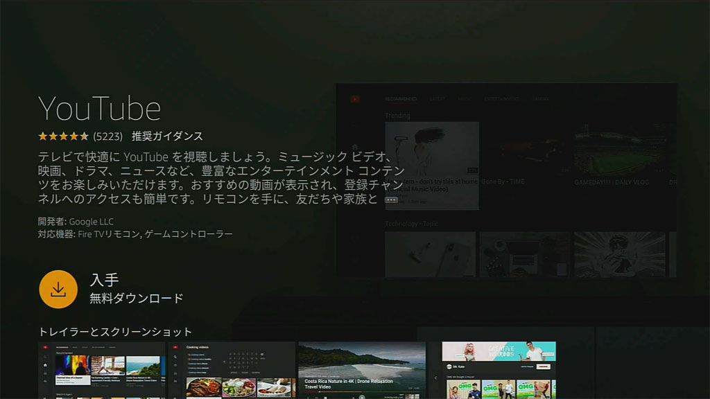 アプリをインストールしてYouTubeをみます