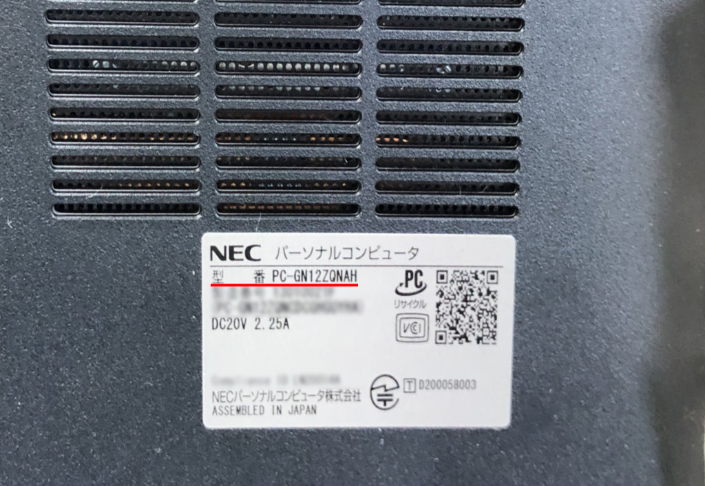 比較的新しいパソコンだったので型番調べて