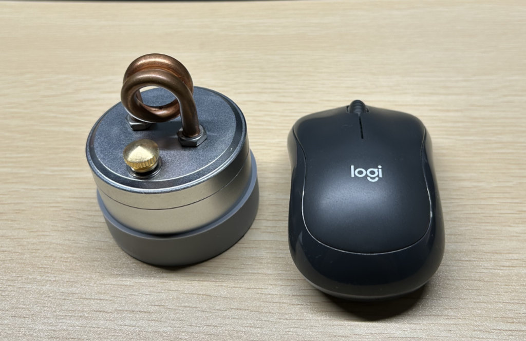 アルコールバーナーとマウスの大きさ比較