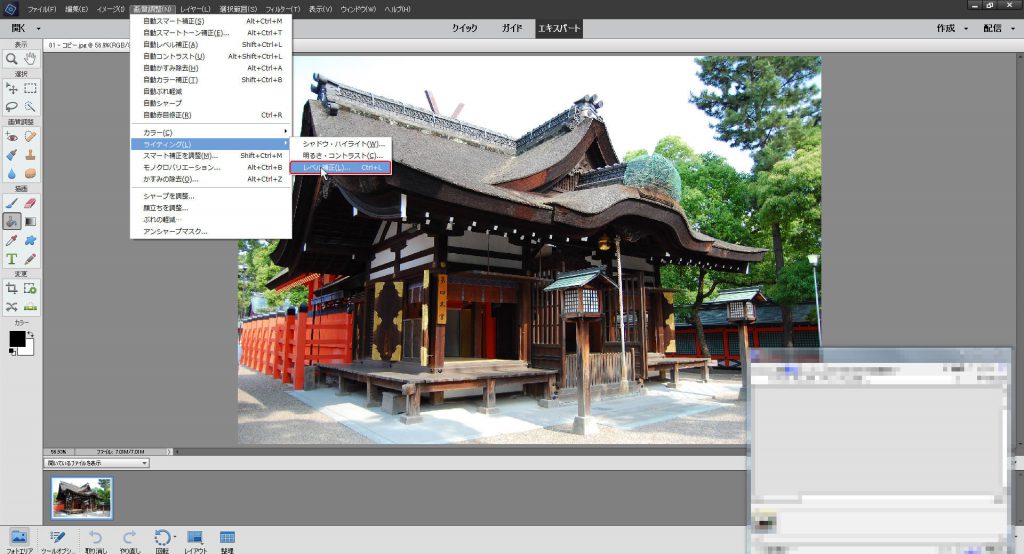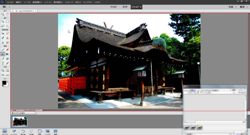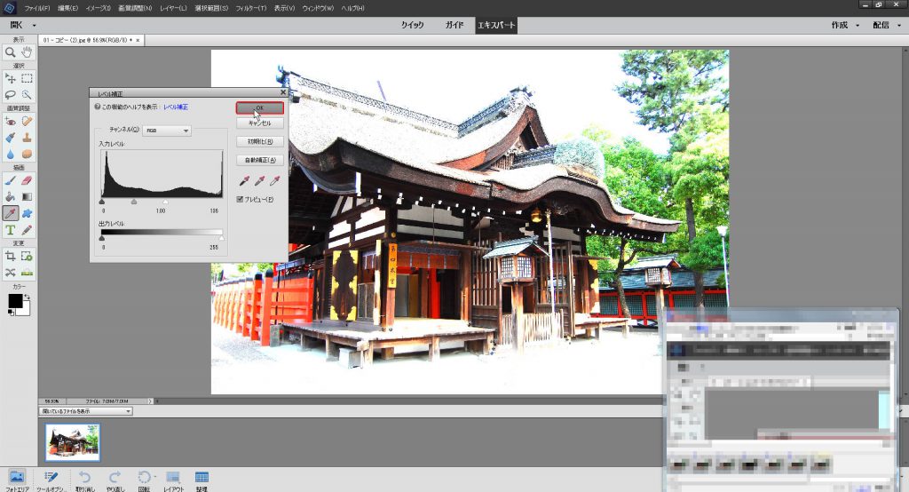 PhotoshopElでコピーした1枚目は暗く処理します。
