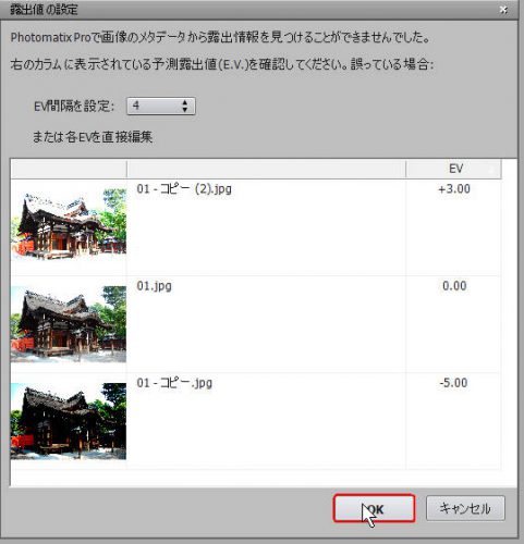 次は実際にPhotomatrixPROを使ってHDR合成をします。