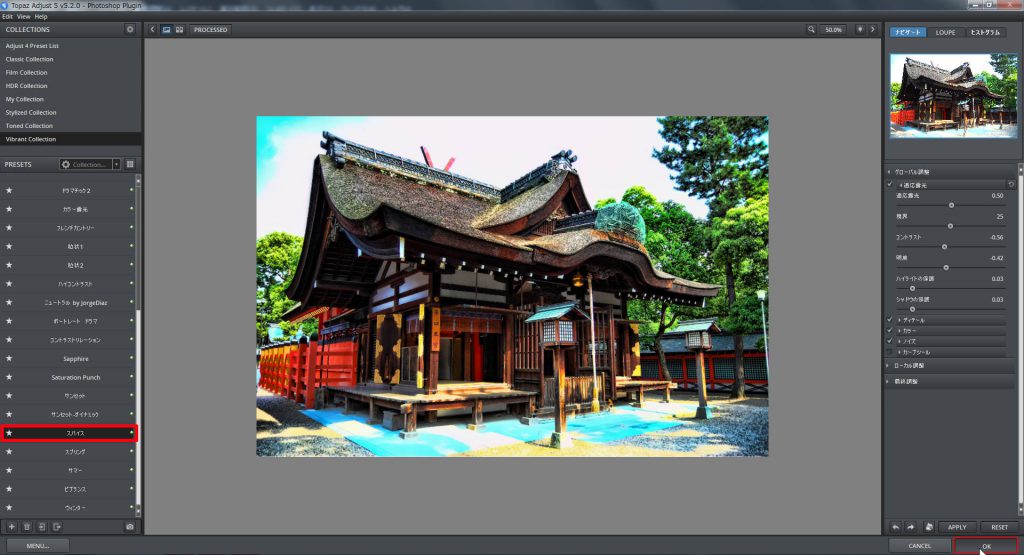 適用させます。このTopaz Adjustだけでも結構なHDR画像を
