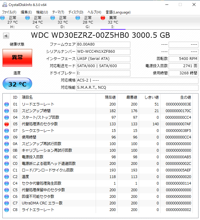 HDDの様子がおかしい