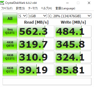 M.2のSSDをCrystal Disk Markで性能チェック