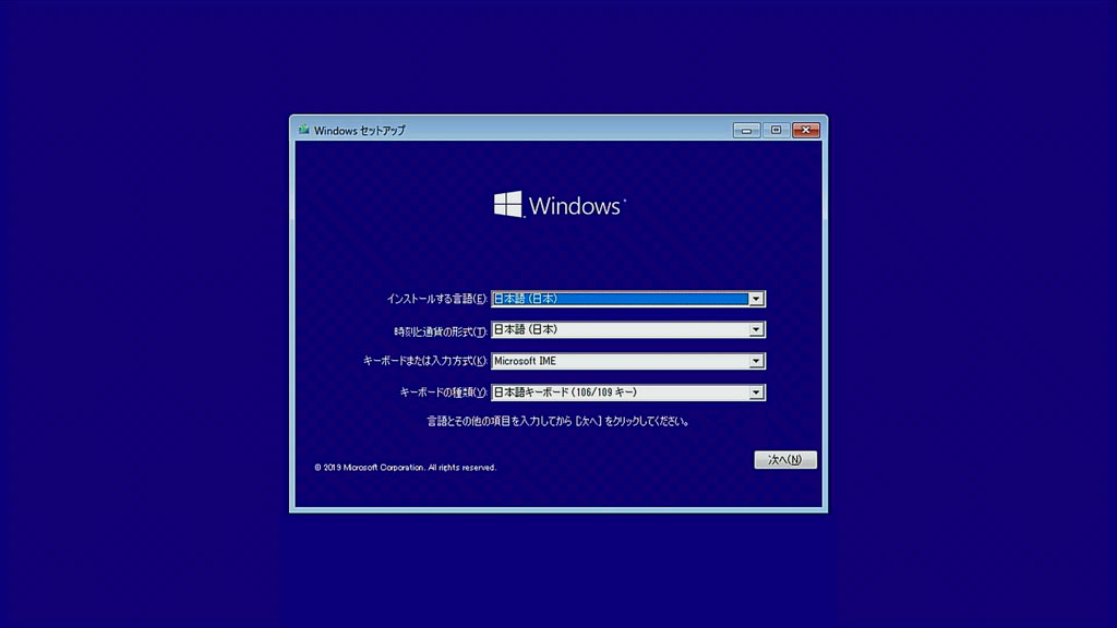 では次にWindows10をインストールします。
