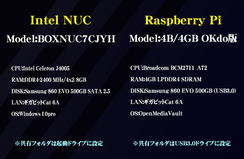 扱いやすいWindowsOSと安心のINTEL NUC に軍配かな。