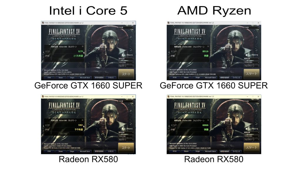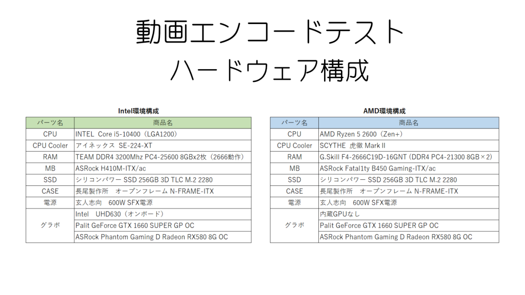 CPUはIntel i5 10400とAMD Ryzen5 2600で