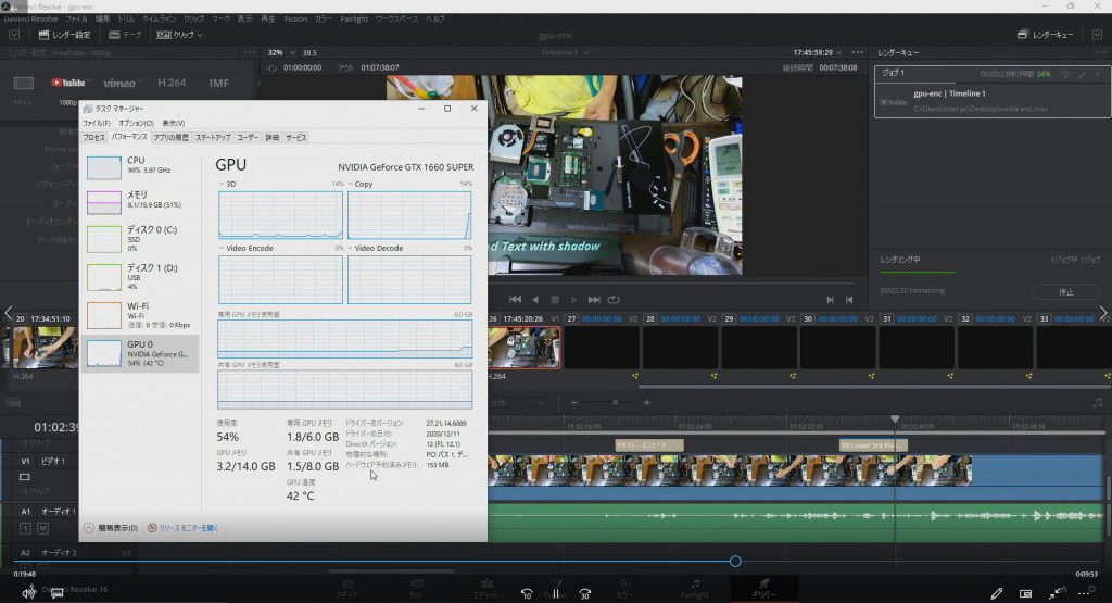 動画編集ソフト で比重が大きなCPU、GPU以外は